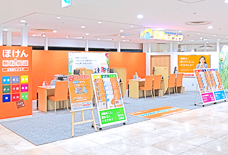 - 店舗で保険相談を承り、複数の保険会社からご提案いたします。(見直しの場合は保険証券をご持参ください。)